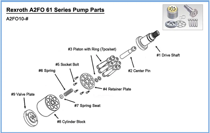 Fornece reconstruir o novo grupo rotativo da bomba de pistão A2FO10, peças de substituição e sobressalência, 100% compatíveis com Rexroth original, peças de bomba de pistão de boa qualidade e mais preço econômico .